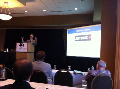 John Welch of the TTABlog just gave a humorous, somewhat self-deprecating talk regarding trends at the TTAB. He predicts that lack of bona fide intent to use will be the new hot topic – replacing fraud as the trend to watch. I’ve never seen a presenter admit to getting bored by his own presentation. Funny guy. Glad the IP Committee was able to bring him in.